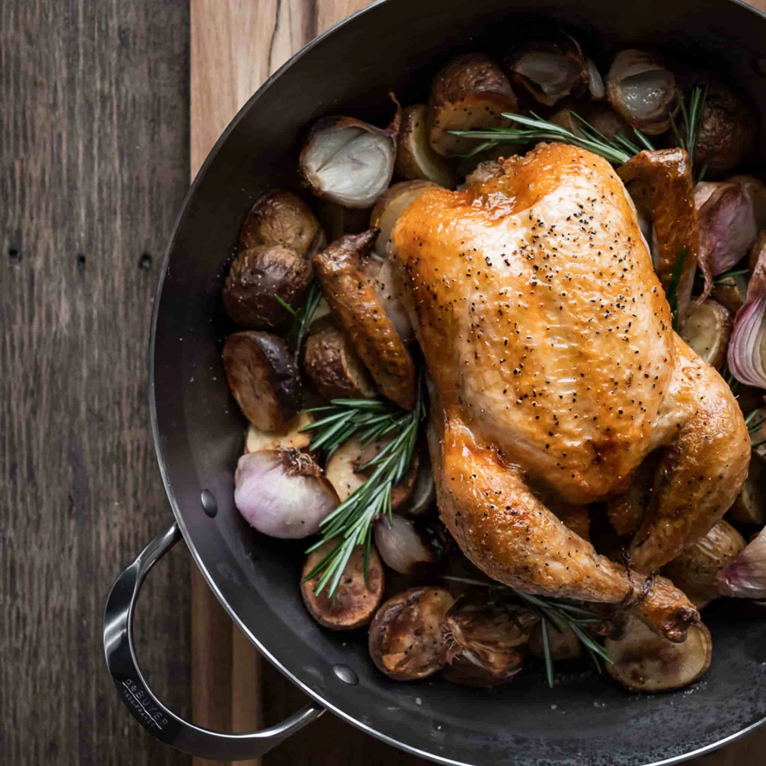 The 32cm De Buyer Mineral B country frying pan with 2 handles gives you great cooking results every day. Use the pan for everything from sautéing large quantities of potatoes to searing meat.
