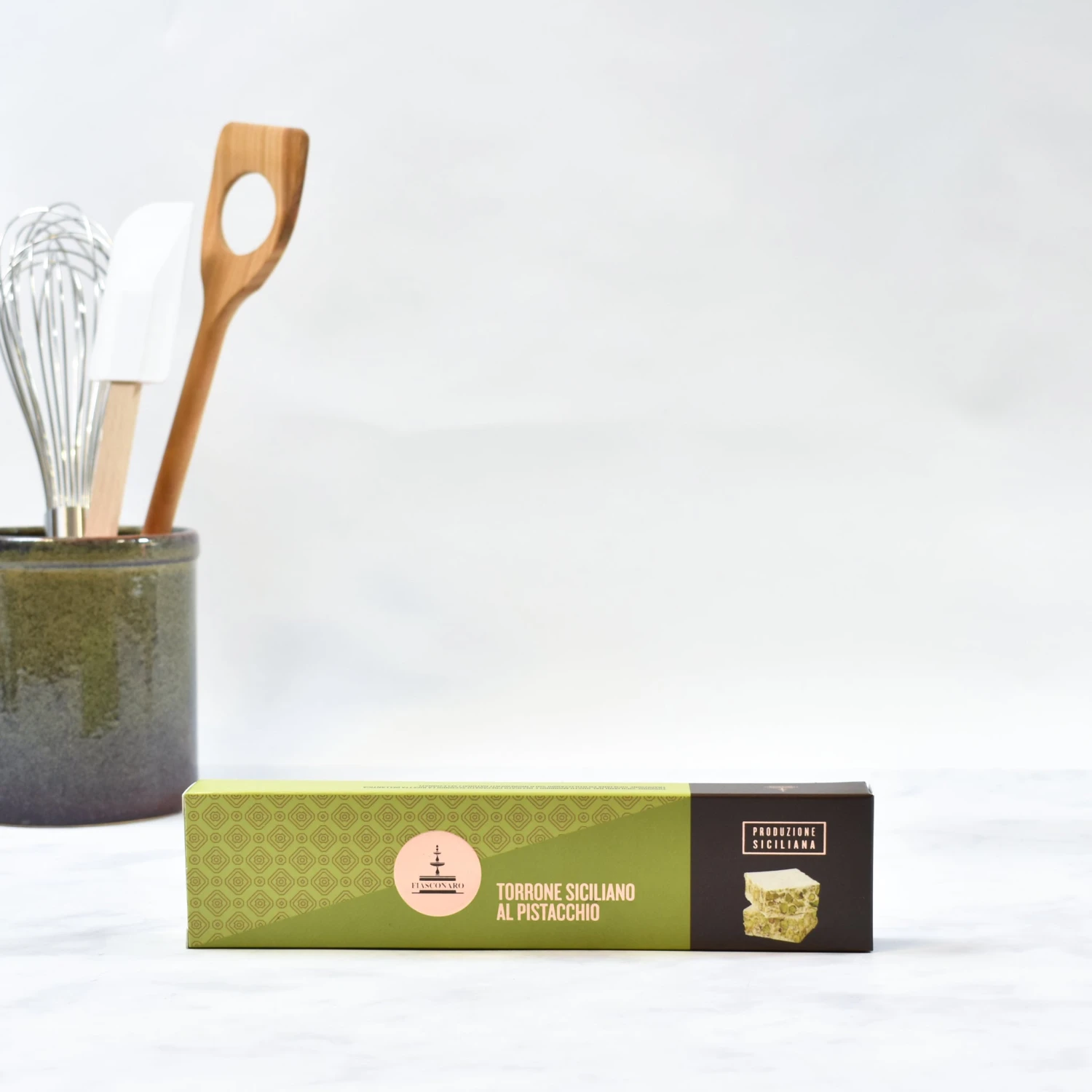 Fiasconaro Sicilian pistachio torrone is a real treat for pistachio fans. This soft nougat is packed with Sicilian pistachios, and is an ideal sweet treat after dinner or with a cup of coffee.