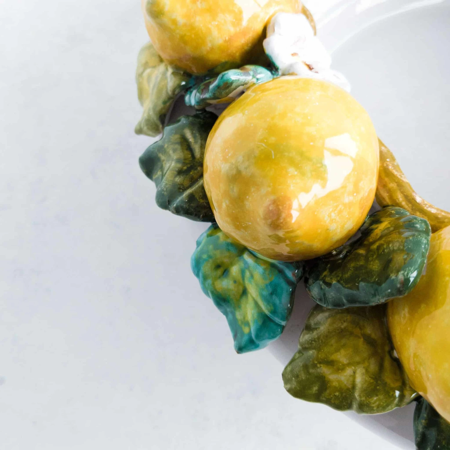 With this handmade Tuscan lemon bowl, you can give your dining table a stunning Italian upgrade. The deep white bowl is decorated with handmade and hand-painted ornate lemons, leaves and delicate flowers.