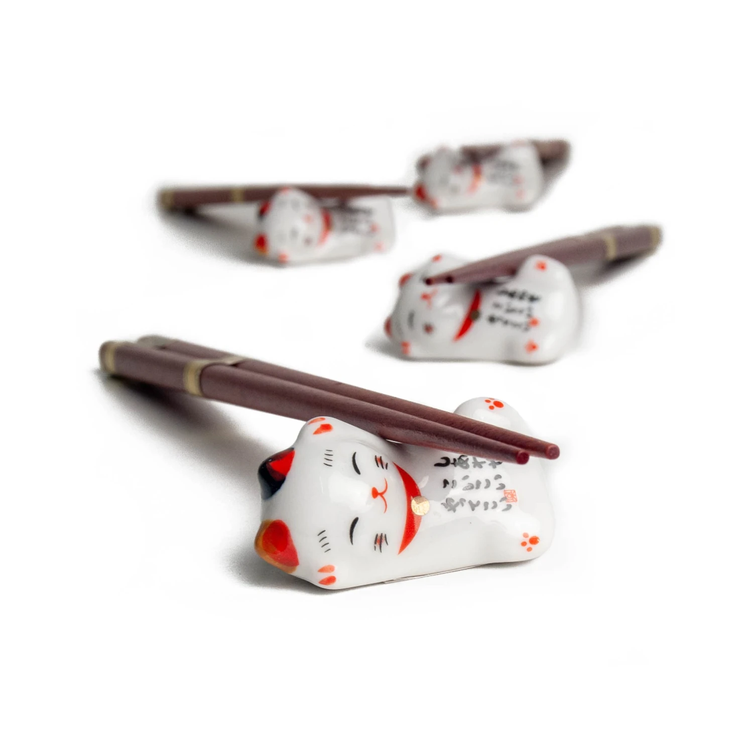 These lucky cat chopsticks with rest is purr-fect for any lovers of cats or sushi – or both! These charming cat chopstick rests make a fun addition to any dining table.Â