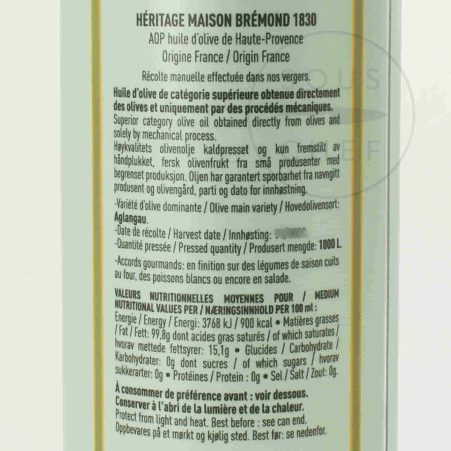 Maison Bremond’s heritage green fruity olive oil is made from carefully selected olives from groves in Haute-Provence, France. The olives are pressed just a few hours after being picked to produce 1000 litres of outstanding extra virgin olive oil.