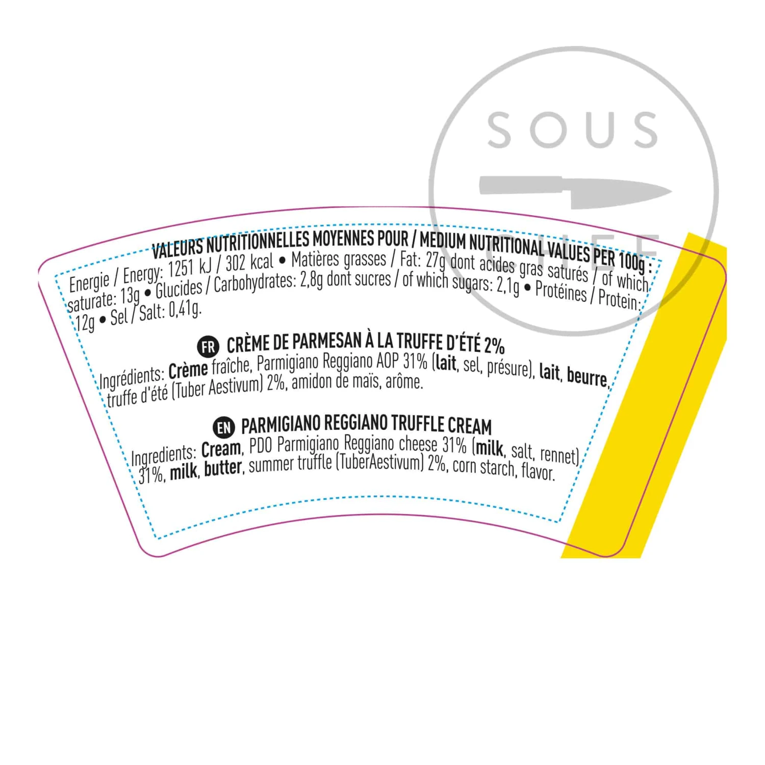 Ingredients: Cream, PDOÂ Parmigiano Reggiano cheese 31%, (milk, salt, rennet), 31%, milk, butter, summer truffle ( tuber aestivum) 2%, corn starch, flavour.