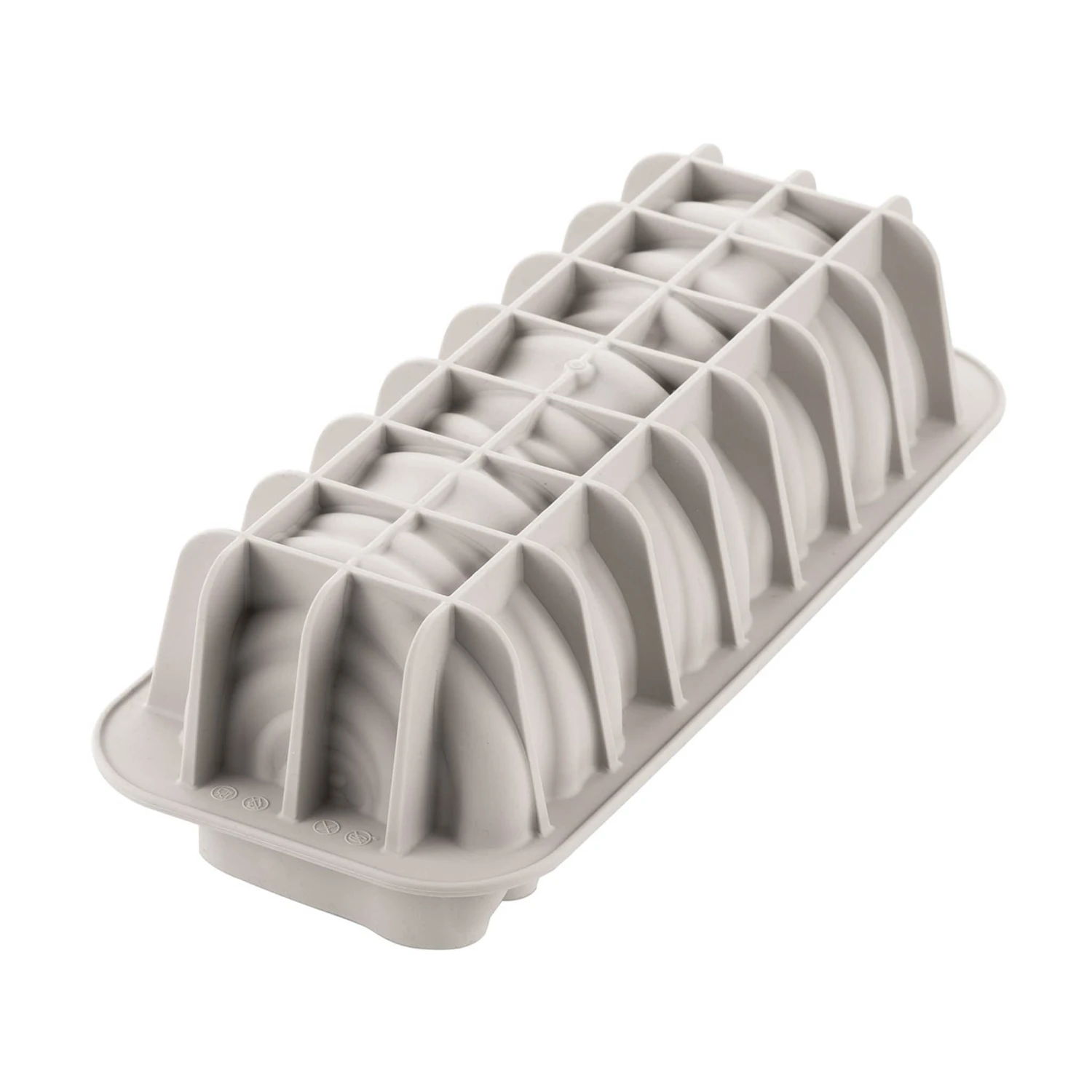 Fill this flexible mould with layers of fruit gel, sponge cake and crème pâtissière. Once set, gently peel the silicone mould from the dessert to reveal a textured surface. The mould shape is striking, so keep your decoration simple with a dusting of icing sugar or spray finish.