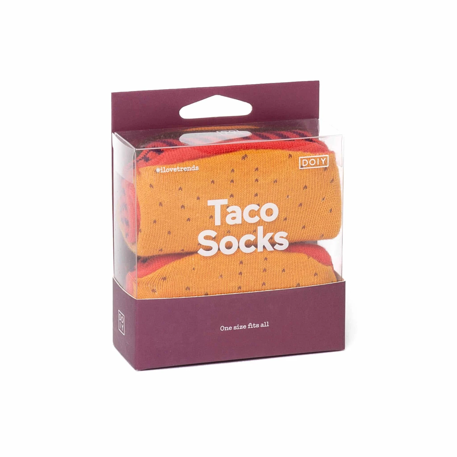 Gift these taco socks to delight any Mexican food lovers in your life! These quirky and colourful socks are folded up to resemble crunchy tacos with a spicy meat filling. When they are worn, they have a bright block colour pattern of each element of the fresh taco.